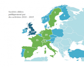 La majorité des fonds européens se concentrent d’avantage sur le long terme que les Etats-Unis mais la plupart des gros fonds activistes de long terme restent américains. En Europe, les sociétés les plus ciblées publiquement par les activistes sont très largement anglaises (134), suivies par les allemandes (19), les françaises (15) et les suisses (12).