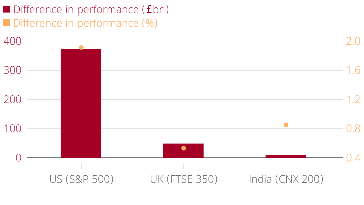 Listed companies in the UK, US and India with at least one woman on their board beat male-only boards by $430bn in 2014, according to a report from Grant Thornton which measured the difference in returns on assets.